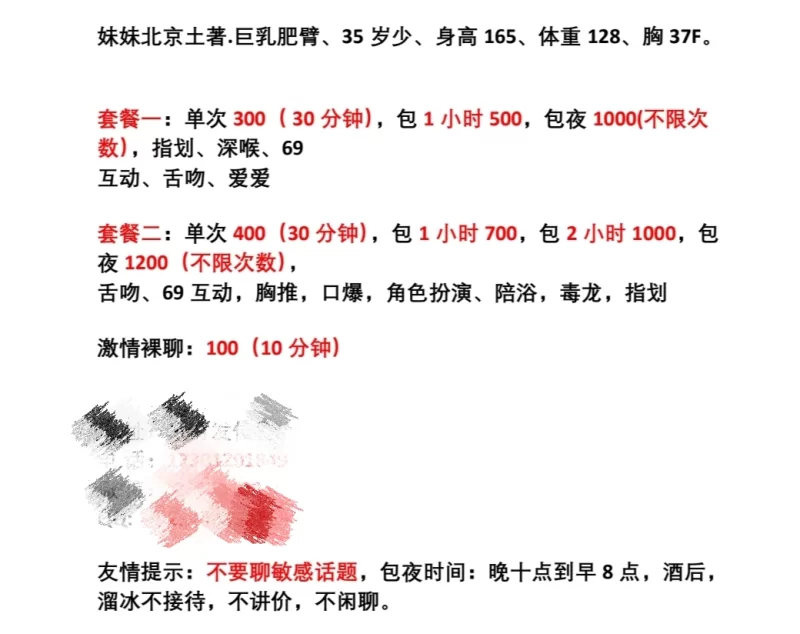 服务项目: 指滑,69,深喉,互动,舌吻,毒龙等等